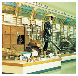 亀ノ尾の里資料館阿部亀治など7人の民間育種家の功績や昔の農具・民具などを展示。
