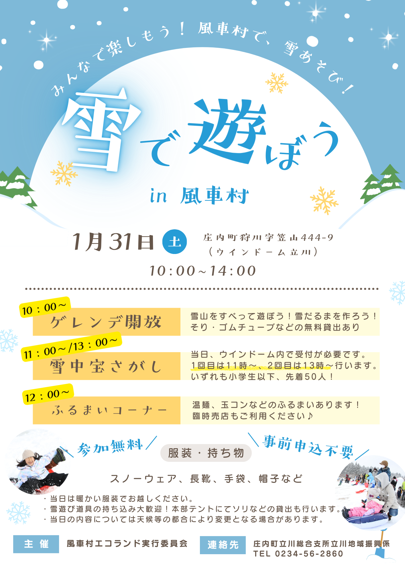 雪を思いっきり楽しめる冬のイベント「2026雪で遊ぼうin風車村」を開催します!