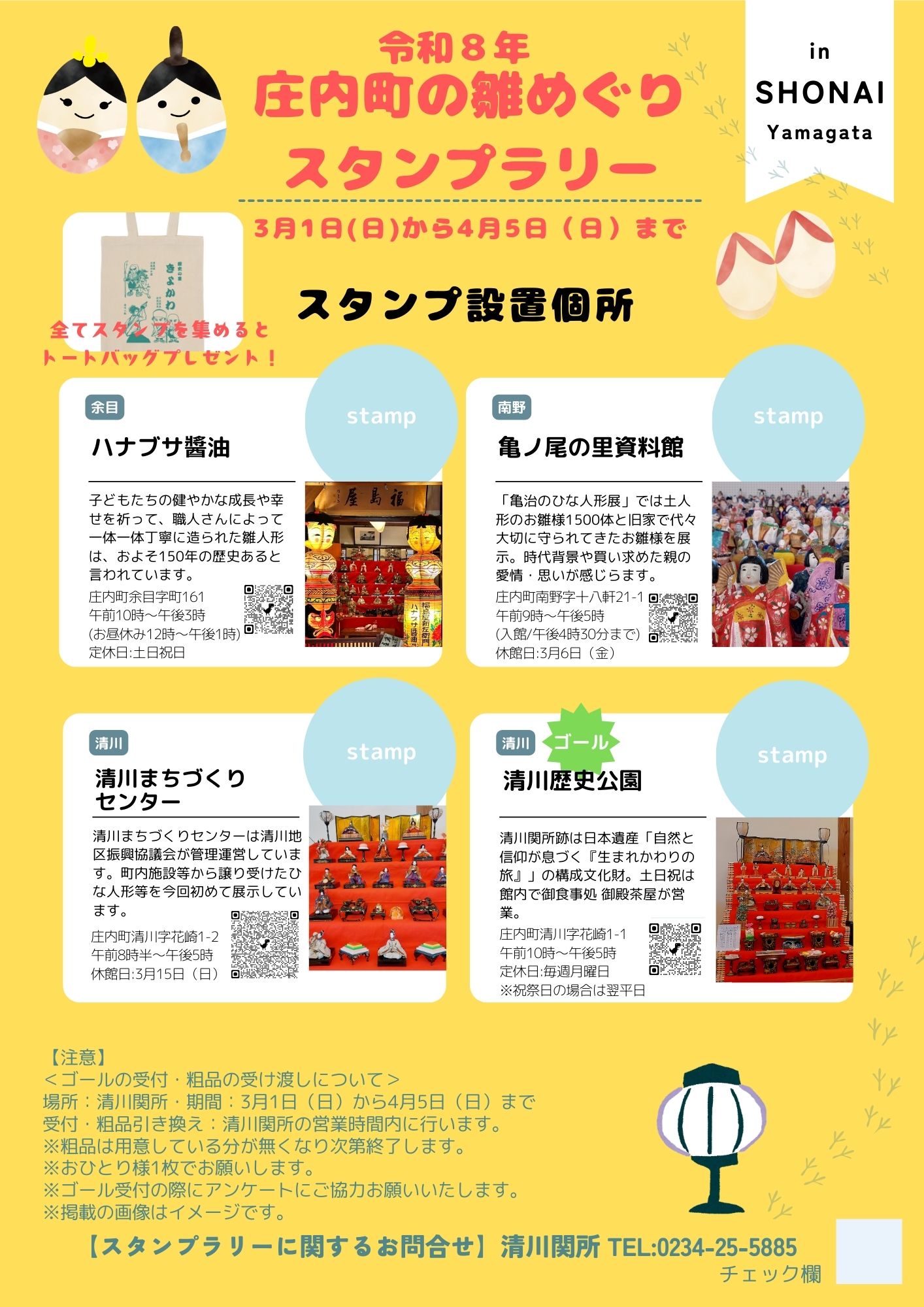 スタンプ設置個所:ハナブサ醤油・亀ノ尾の里資料館・清川まちづくセンター・清川関所